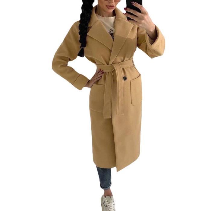 Ce trench coat pour femme, c'est la pièce parfaite pour les saisons fraîches. Inspiré de la laine, il est chaud, doux et confortable, tout en ayant un style élégant et intemporel. Coupe slim-fit qui met en valeur la silhouette, avec une ceinture pour ajuster la taille. Il a un col à revers, une double rangée de boutons et deux poches passepoilées pratiques. Long et fluide, il te protège bien du vent et du froid. Matière de bonne qualité, durable pour un usage quotidien. Tu peux le porter pour aller au travail, en rendez-vous, en balade, en soirée… Bref, c'est ultra polyvalent. Il existe en plusieurs tailles (choisis ta taille UE), et en couleur unie. Attention, les couleurs peuvent varier un peu selon les écrans. Si tu cherches un manteau qui allie confort, chaleur et élégance, ce trench est un excellent choix. Il te gardera au chaud tout en te donnant un look sophistiqué. Un indispensable de la garde-robe automne-hiver !